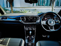 Much had been said about T-Roc before it even touched local shored but ignore what you read on the forums because it is so much more than just a "Golf on stilts", it has its own charm and character. The design is bold and striking with a coupe like silhouette adds to the cars sexiness and the angular front end which is almost like a fusion of the smaller T-Cross and the larger Toureg showing that it means business. The model I had was in Deep Black Pearlescent paint with aluminum accents around the exterior to break the colour, there is also a bi-colour option which has the roof and A-pillar in another colour of your choice which looks pretty good too. The car, in keeping with VW's new design philosophy has trade-mark folds and creases as well as recognizable shapes such as the day time running LED lights which are house in the front bumper just below the main headlamps. Like its bigger brother the Tiguan, the wheel arches on the T-Roc are very pronounced and give a bolder look to the car. The T-Roc came fitted with 19" multi-spoke R Line rims which accentuates the cars sporty nature but still shows that it's not afraid to get dirty. Moving onto the interior, VW really are making great strides in this aspect with their welcoming spaces, tri-colour seats, full digital instrument cluster as well as an 8" touch screen media center of which I'll touch on a little later and the different colour stitching which adds that added element of class to the car.